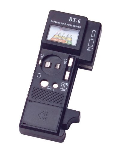 The TEKTON Battery, Bulb and Fuse Tester tests voltage of AAA, AA, C, D, 9-Volt and button cell batteries. It can also test the continuity of standard appliance, household, automotive and decorative light bulbs. In addition, it can test the continuity of glass-type and blade-type fuses. Battery capacity is accurately checked under simulated load conditions. It will help you reduce waste and save unnecessary expenses by checking batteries, bulbs and fuses before replacing them. The analog meter is easy to read. Requires 9-volt battery which is not included.